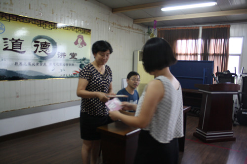 本期道德講堂主題為“愛心·奉獻”,在一曲《愛的奉獻》后,宣講員深情講述了“揚州獻血第一人”——檢察官孫程的感人事跡,深深感動了參與活動的職工們,大家紛紛表示會積極參與到無償獻血等社會公益活動中去,多為社會做奉獻,活動最后,在場人員都領到了一張吉祥卡,寓意大家在人生旅途中幸福一輩子,向善一輩子。