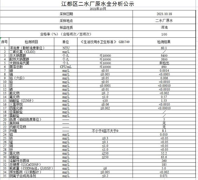 水質(zhì)公示
