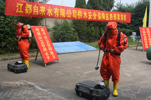 為進(jìn)一步提高安全防范水平,保障夏季高峰供水,6月24日,區(qū)自來水公司根據(jù)安全生產(chǎn)月活動(dòng)安排,在第二水廠舉行了液氯泄漏及突發(fā)性水源微污染事件應(yīng)急預(yù)案演練,公司制水生產(chǎn)、機(jī)電維修、水質(zhì)檢測(cè)等工種人員參加了演練,區(qū)域供水增壓泵站工作人員進(jìn)行了全過程學(xué)習(xí)。區(qū)城建局相關(guān)部門負(fù)責(zé)人進(jìn)行了現(xiàn)場(chǎng)指導(dǎo),區(qū)污水處理廠和亨達(dá)水務(wù)等兄弟單位組織人員現(xiàn)場(chǎng)觀摩。