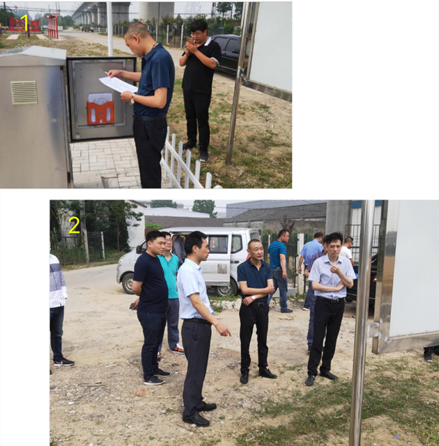 圖1、2為上級(jí)部門(mén)領(lǐng)導(dǎo)檢查農(nóng)村污水處理設(shè)施現(xiàn)場(chǎng)運(yùn)行狀況。