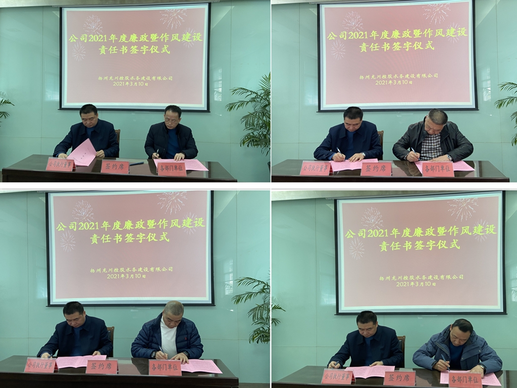 儀式上,公司執行董事張勇同志分別與各部門、子公司主要負責人簽訂《公司2021年度廉政暨作風建設責任書》。公司黨總支副書記、副總經理石元忠同志強調,《責任書》的簽訂,是加強廉政工作的一種重要形式,希望和要求各部門、子公司在思想上高度重視,會后要認真將《責任書》內容加以消化吸收,在工作上要按照“一崗雙責”的要求做到統籌兼顧,對各自部門干部職工做好層層要求、層層落實,切實履行廉政工作和作風建設主體責任。