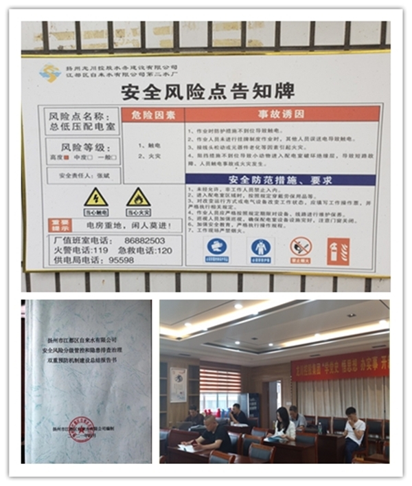 為積極響應我區安全風險分級管控和隱患排查治理雙重預防機制建設,充分發揮其防范和遏制事故發生的作用。江都區自來水公司全面貫徹“安全第一、預防為主、綜合治理”安全生產方針,開展了為期四個多月的“雙重預防機制”建設工作。
